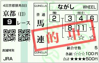 天皇賞は負けましたが、前哨戦という形ですが、第9レースを賭けた結果