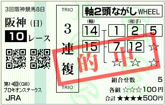 印を付けた馬は、阪神競馬場での実績が上位とふんでいます。